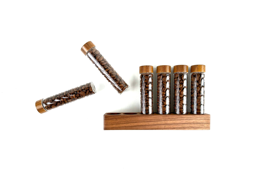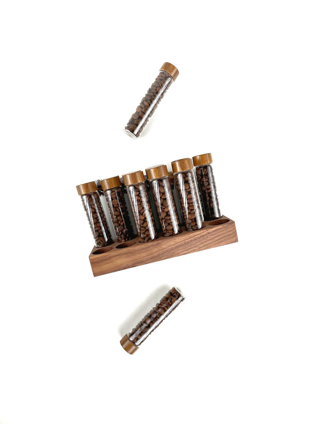 Single Dosing Coffee Beans Cellar with Walnut Wood Stand - 6 tubes