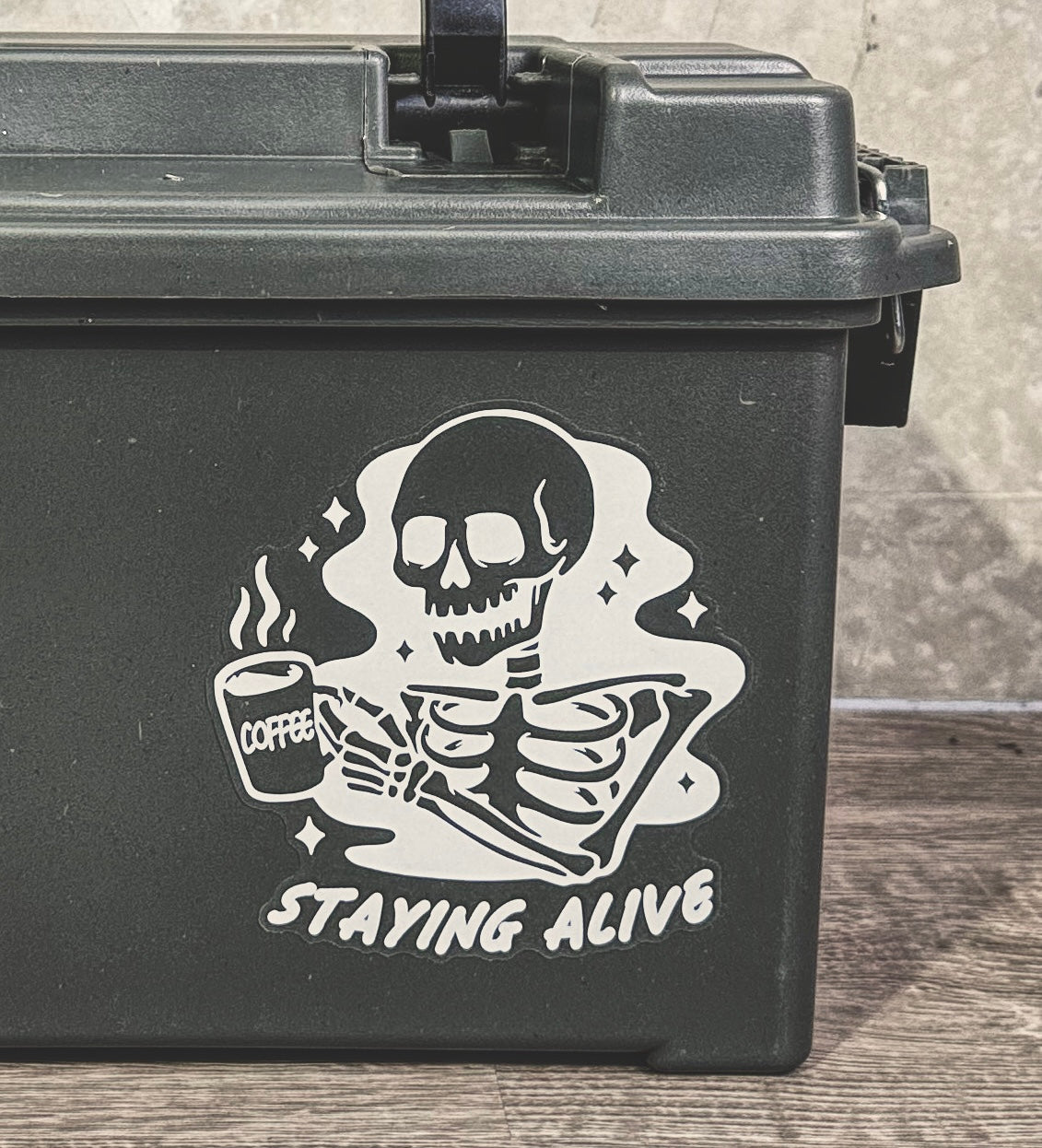 Staying Alive Coffee Vinyl Decal - Vinyl Decals are a creative and easy way to decorate, customize, add personality and a unique style.