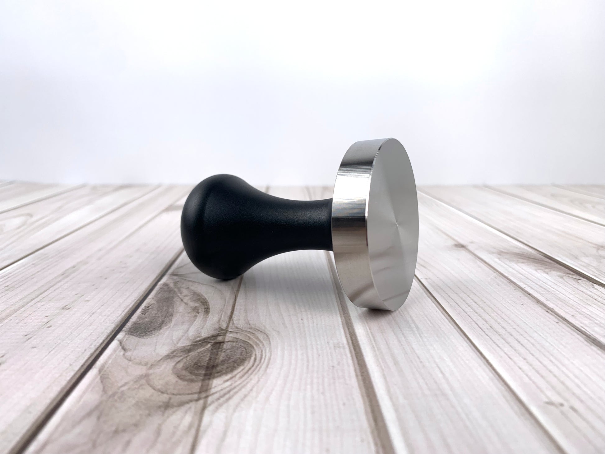 The tamper made of anodised aluminium handle and food grade stainless steel flat base with no coating, does not rust or flake off metal pieces into your grounds when tamping.