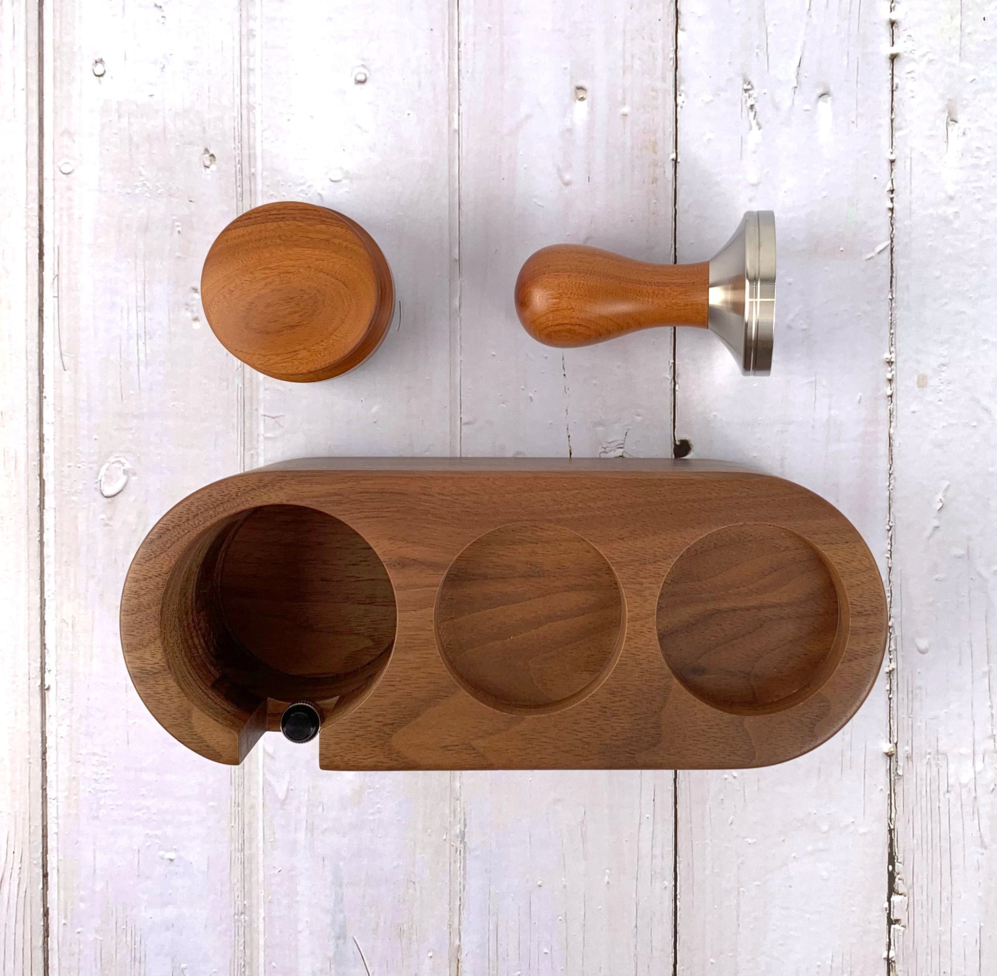 Coffee Espresso Walnut Wood 53mm/54mm Tamper Tamping Station - 3 Slots