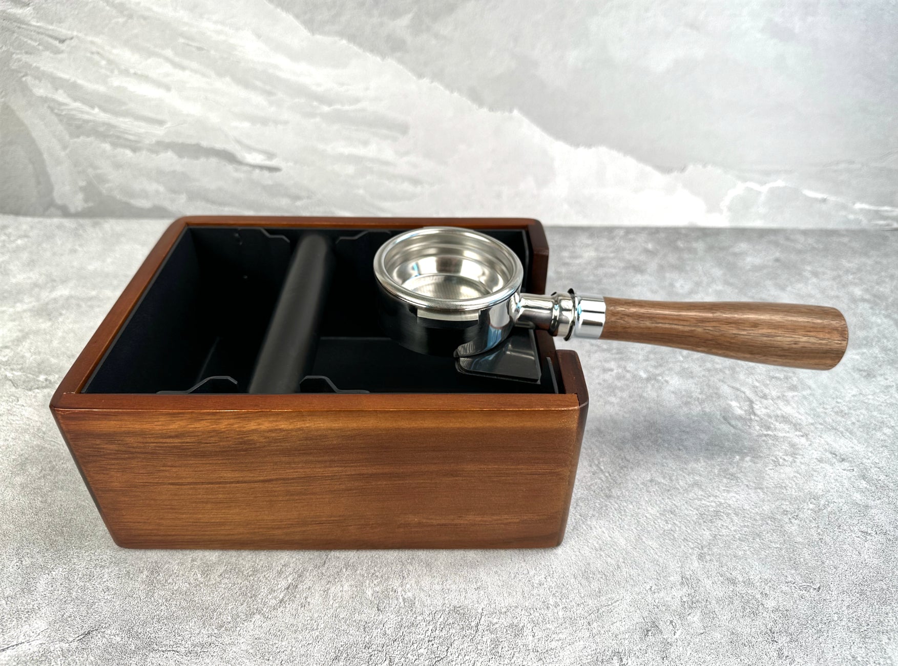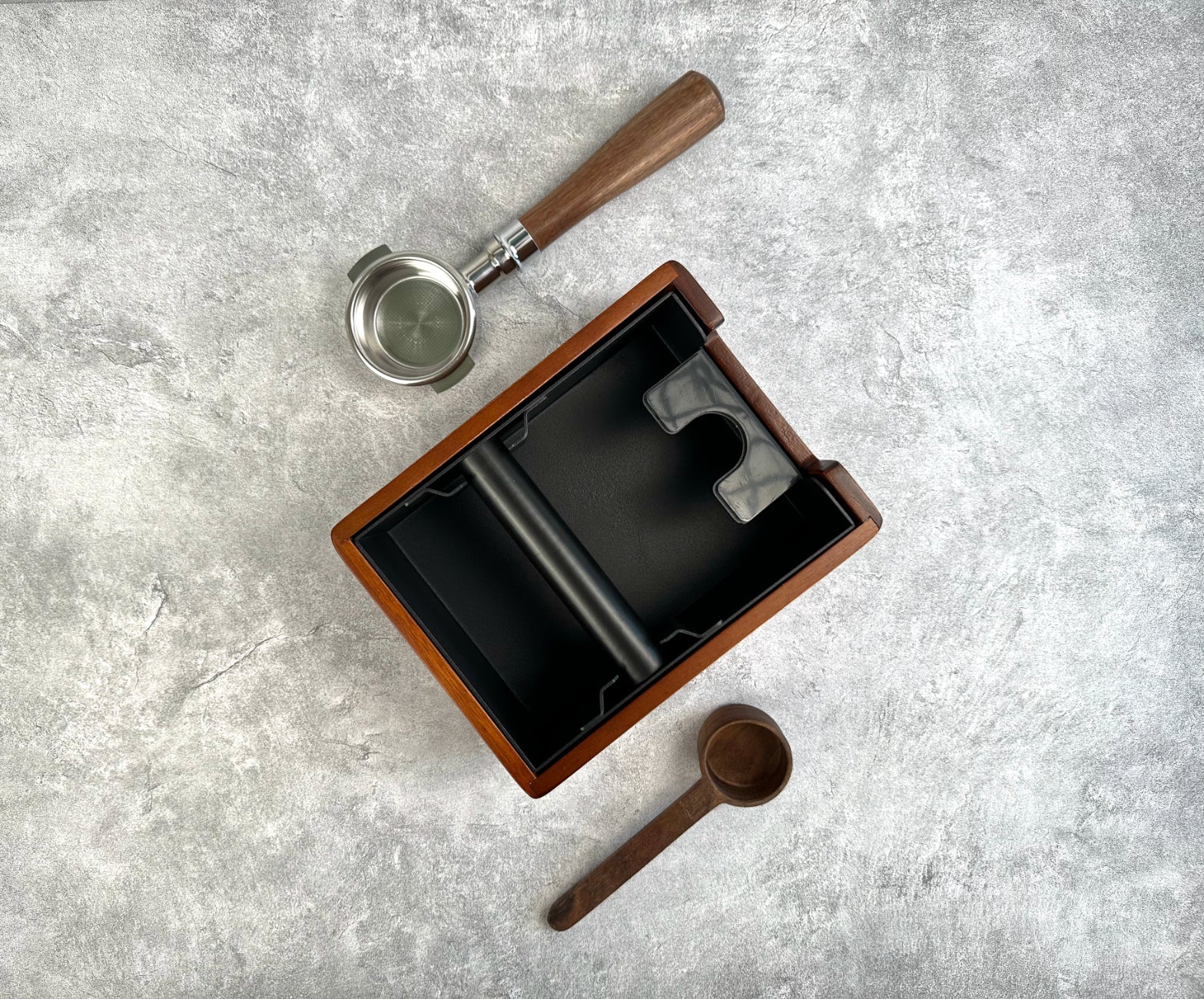 - 1 x Coffee Espresso Walnut Wood Tamping Station with Knock Box V3