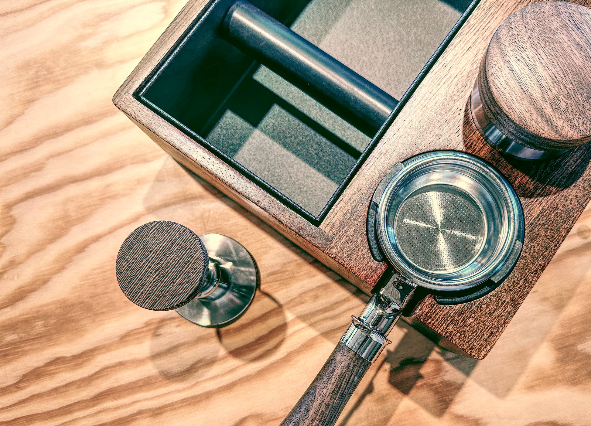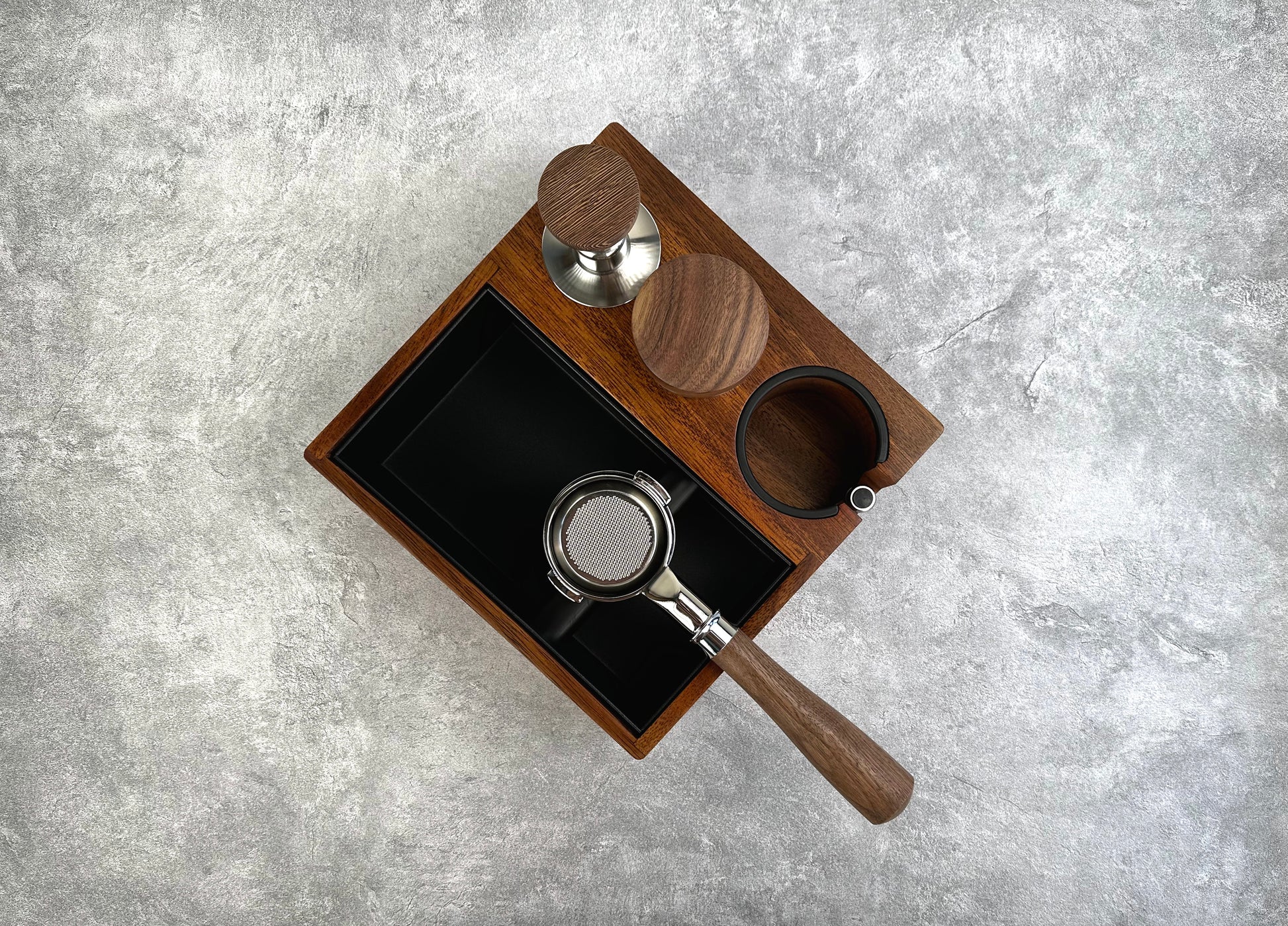 Crafted from exquisite walnut wood, this tamping station is designed to provide you with the ultimate coffee experience. The integrated portafilter stand allows you to distribute and tamp your coffee ground with ease, ensuring a perfectly brewed cup every time.
