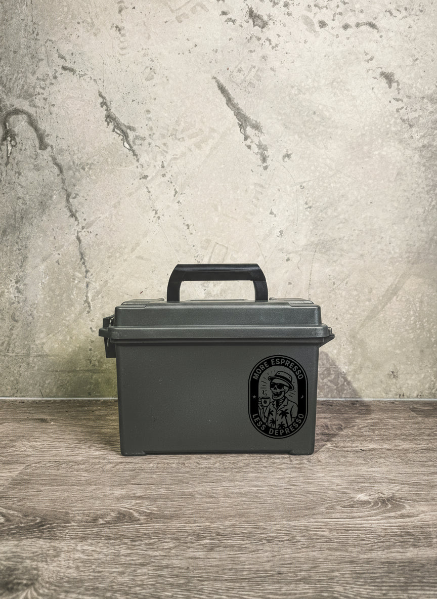 This More Espresso, Less Depresso decal sticker features our original, copyrighted beach-style skeleton design – rocking a straw hat, chill vibes, and serious espresso energy. It’s a fun way to show your love for coffee and good humour, whether you’re at home, in the office, or behind the espresso bar.
