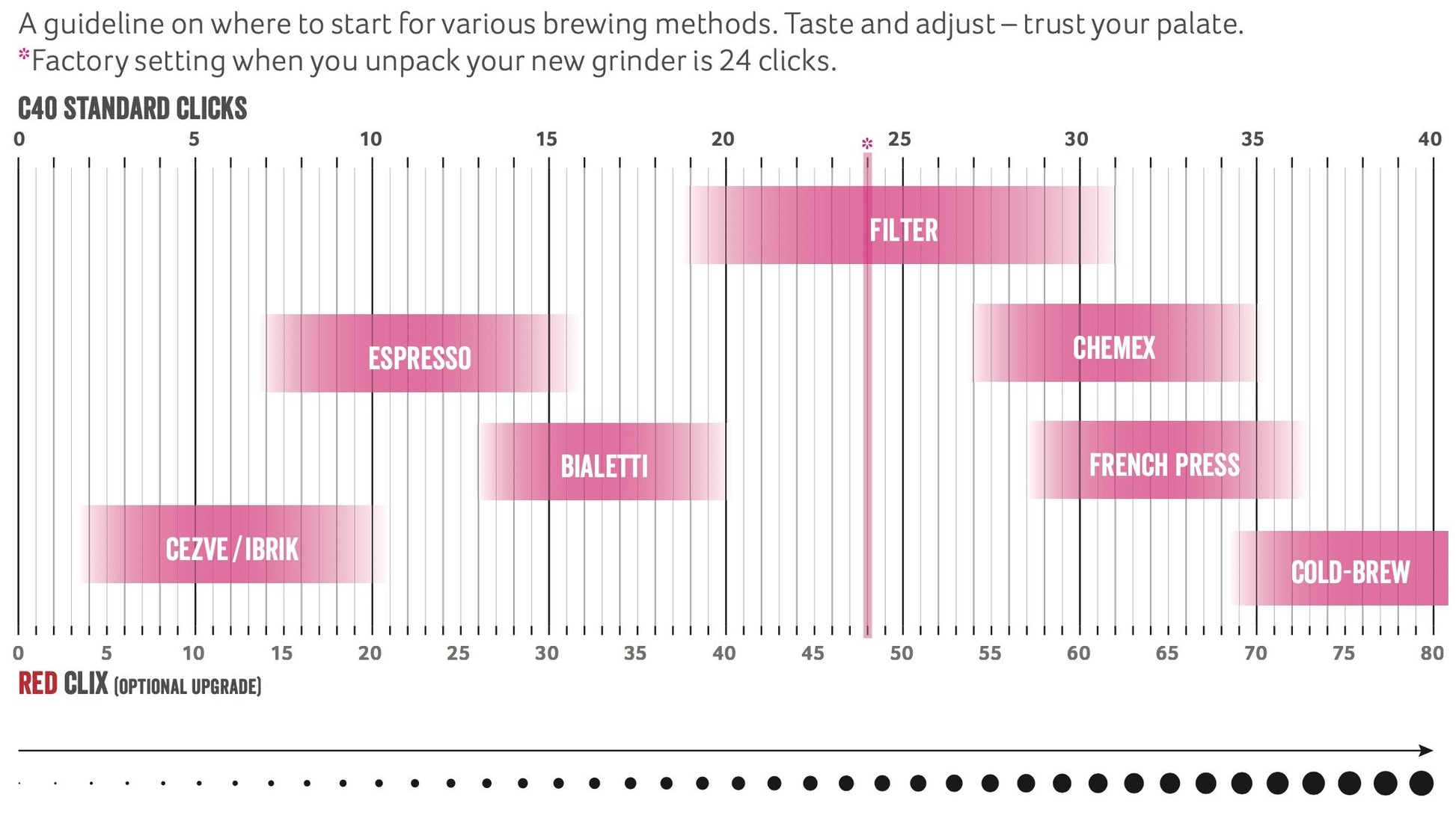 - Chemex: 40-45 clicks
