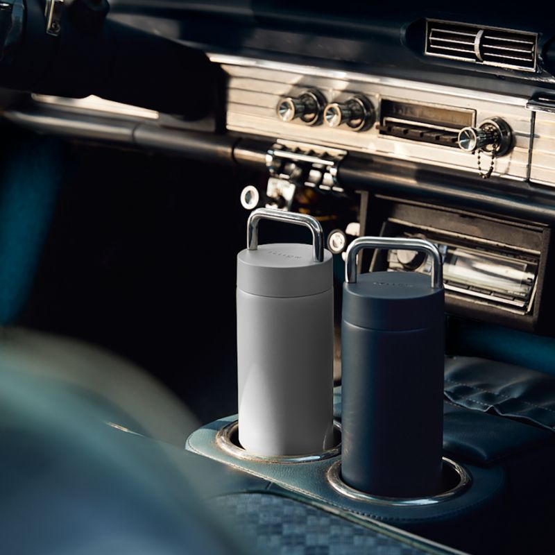 This elegantly designed insulated Fellow Carry Tumbler features True Taste ceramic coating, a thin sippable lip, and a premium metal handle that's easy to carry and easy on the eyes.