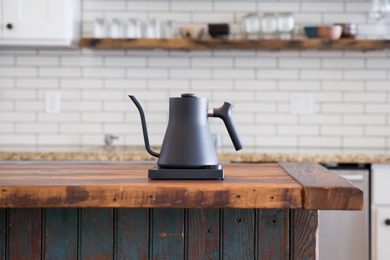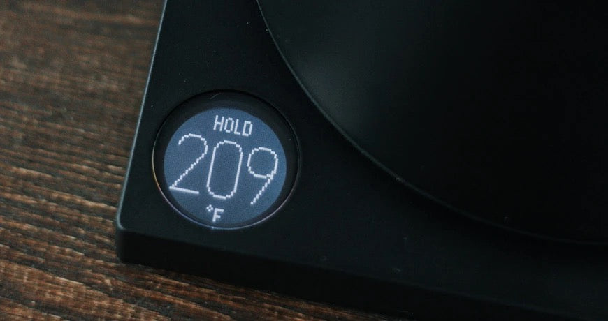 Featuring precision pour spout, variable temperature control, LCD screen, 60-minute hold mode, a brew stopwatch, and a small, minimalist base.