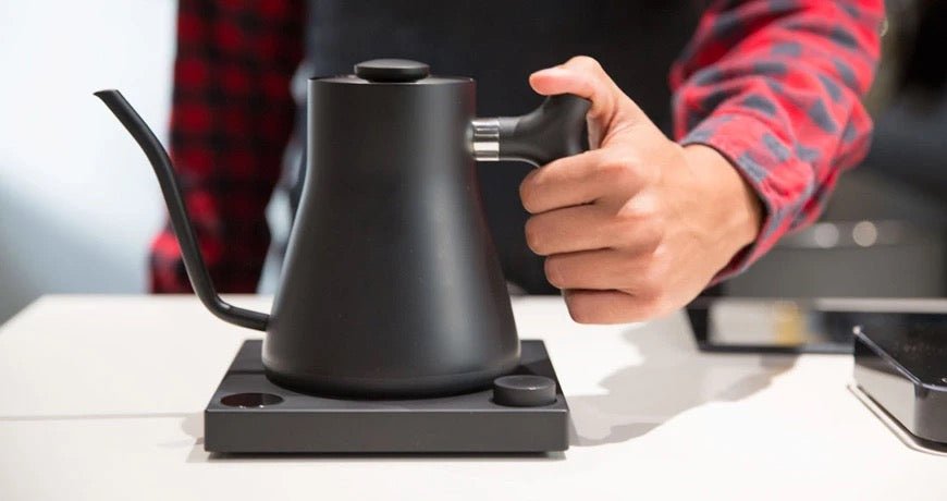 Stagg EKG Electric Pour-Over Kettle's beautifully functional design kicks your brewing up a notch. Enjoy an intuitive, steady pour with Stagg's precision pour spout. Keep track of temperature with it's precise set of controls. Pour at an even, slow pace with Stagg's counterbalanced handle that moves the centre of mass back towards your hand.