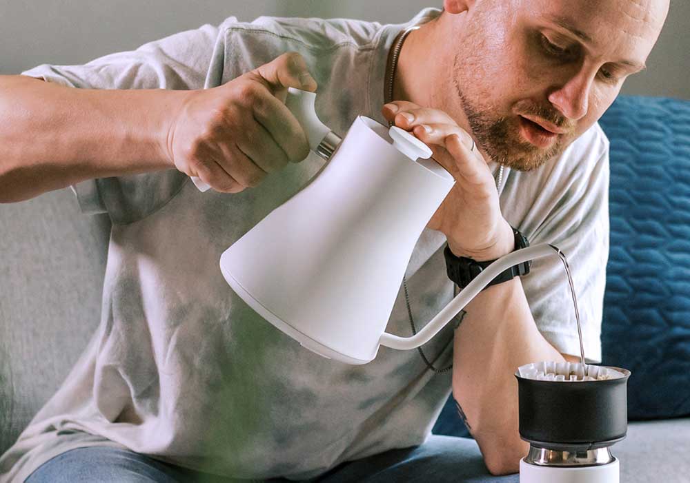 Featuring precision pour spout, variable temperature control, LCD screen, 60-minute hold mode, a brew stopwatch, and a small, minimalist base.