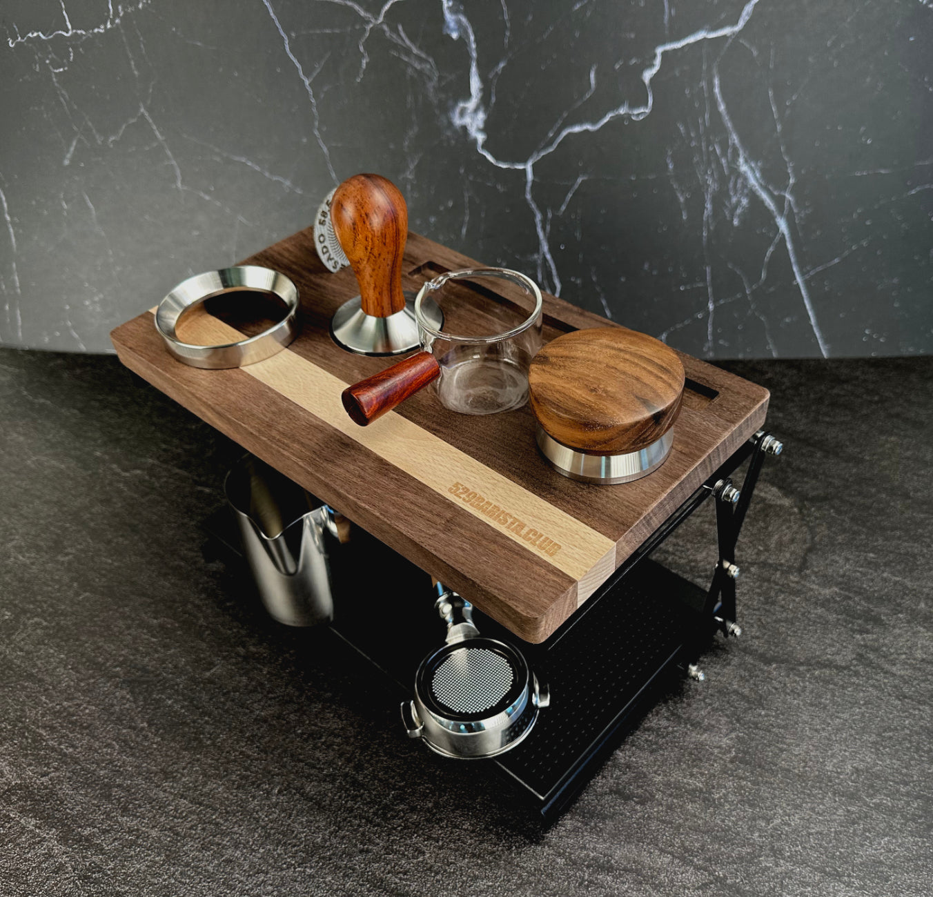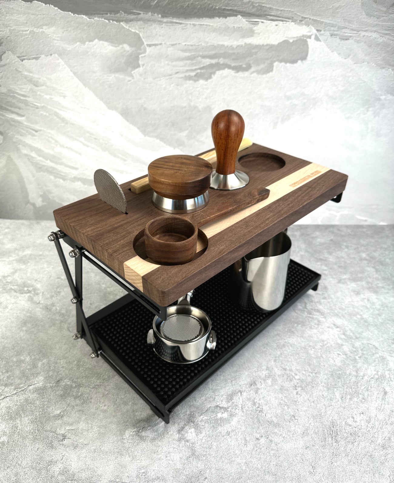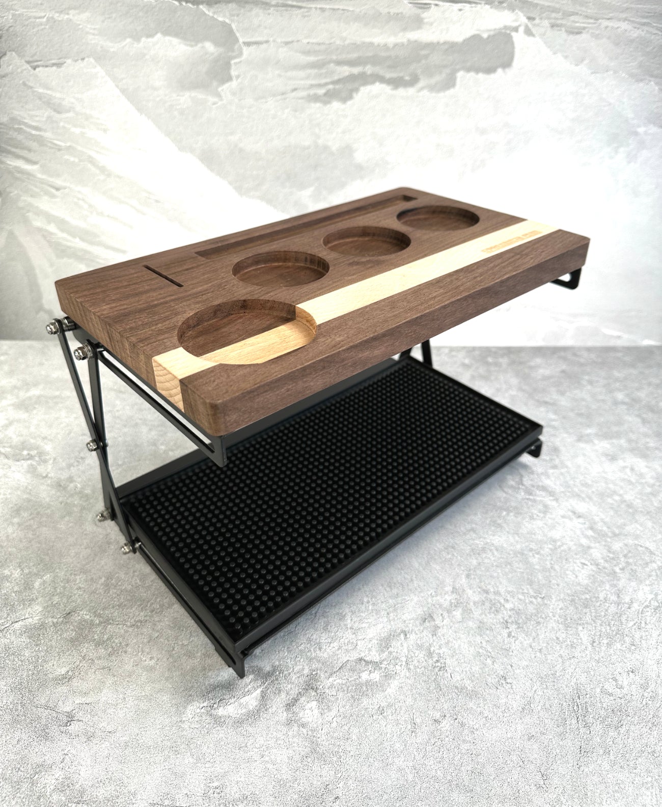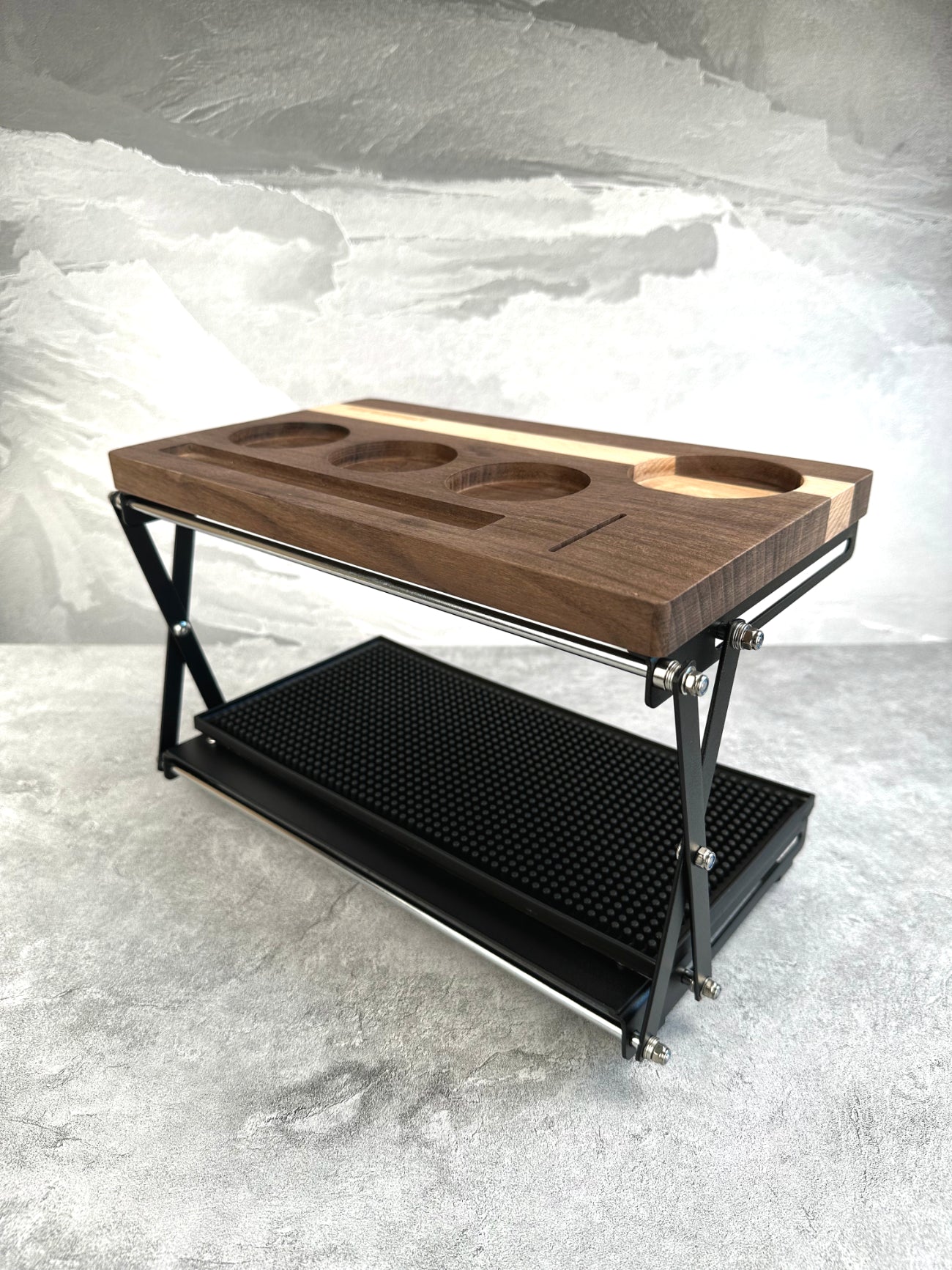 Foldable 2-Tier Coffee Tool Station and Storage Rack - Walnut Wood 58mm
