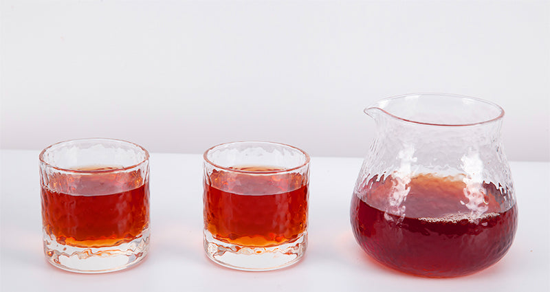 Inspired by the Japanese style of hammered copper-ware, we have designed the glass server and glasses specifically for enjoying specialty coffee. The clear glass and dimpled pattern highlight and refract the colours of your freshly brewed coffee.
