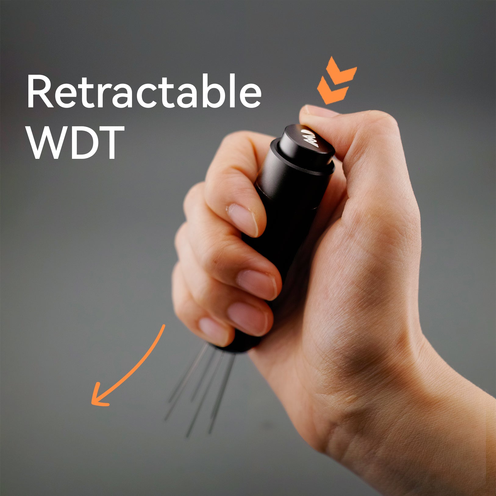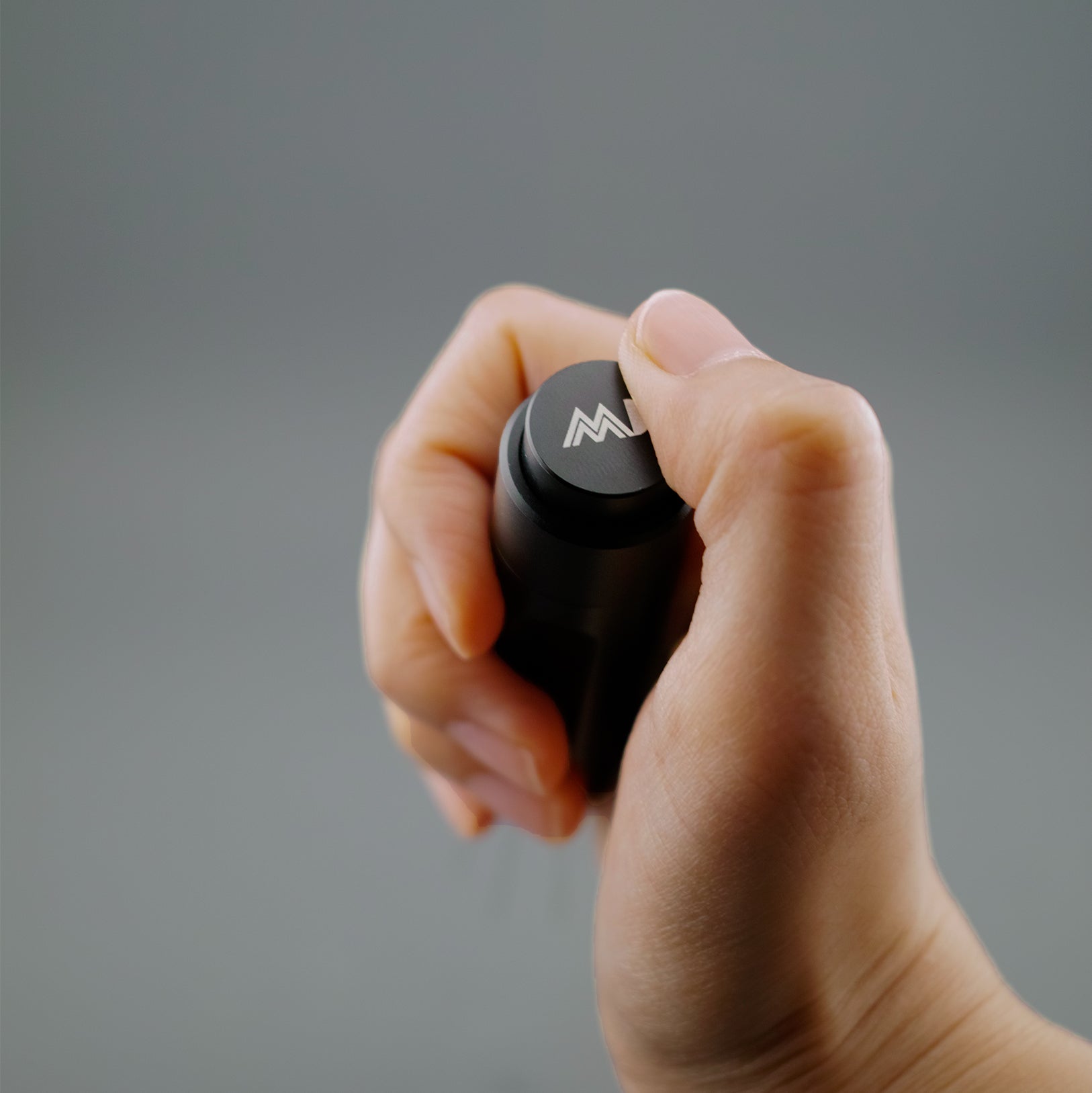 Introducing the Madpen Retractable Coffee WDT Tool in Anodised Aluminium Black—a special edition crafted for those who seek the ultimate in espresso-making precision. This exclusive version elevates the Madpen's already renowned design with a sleek anodised black finish, combining sophistication and durability in a tool that stands out as much for its style as its function.