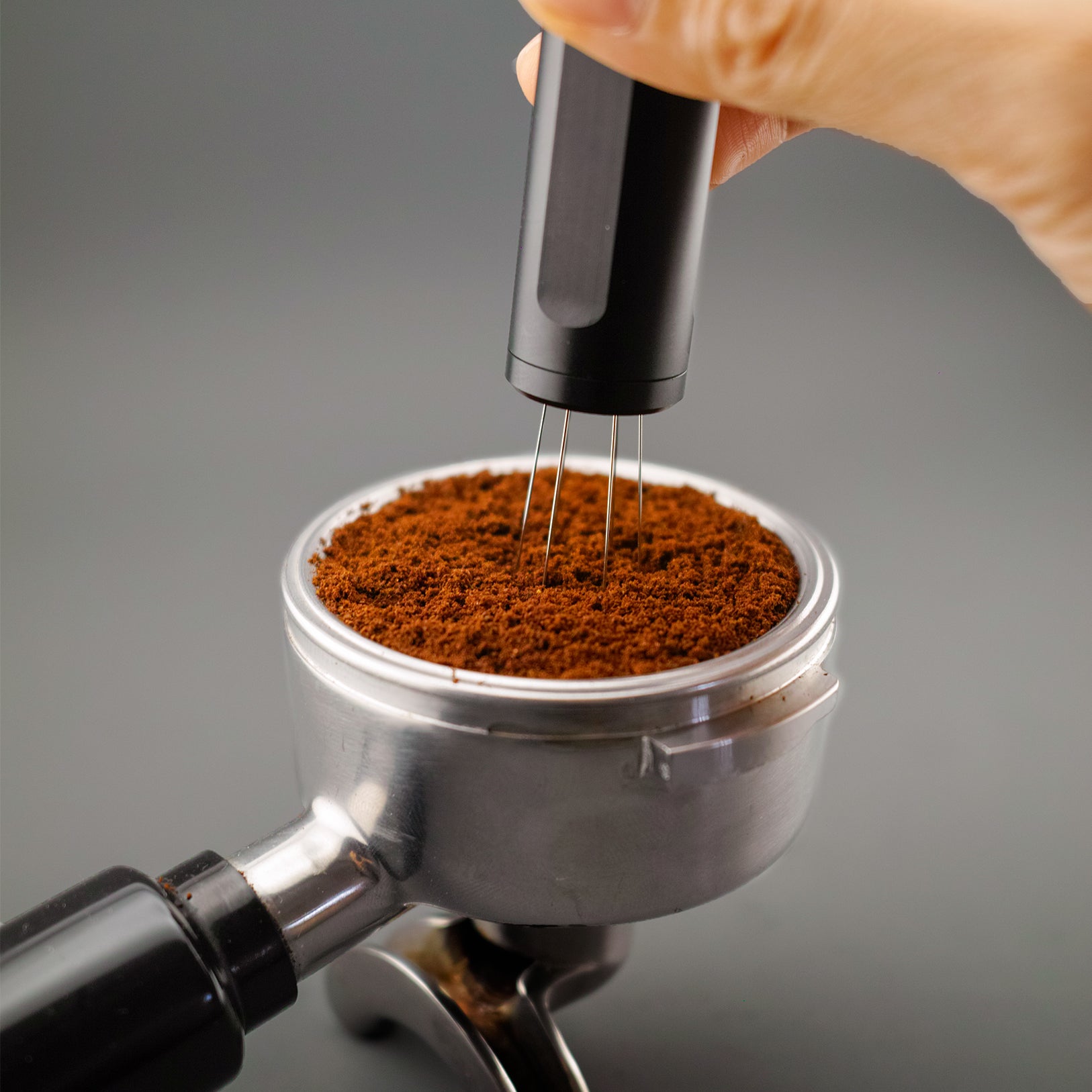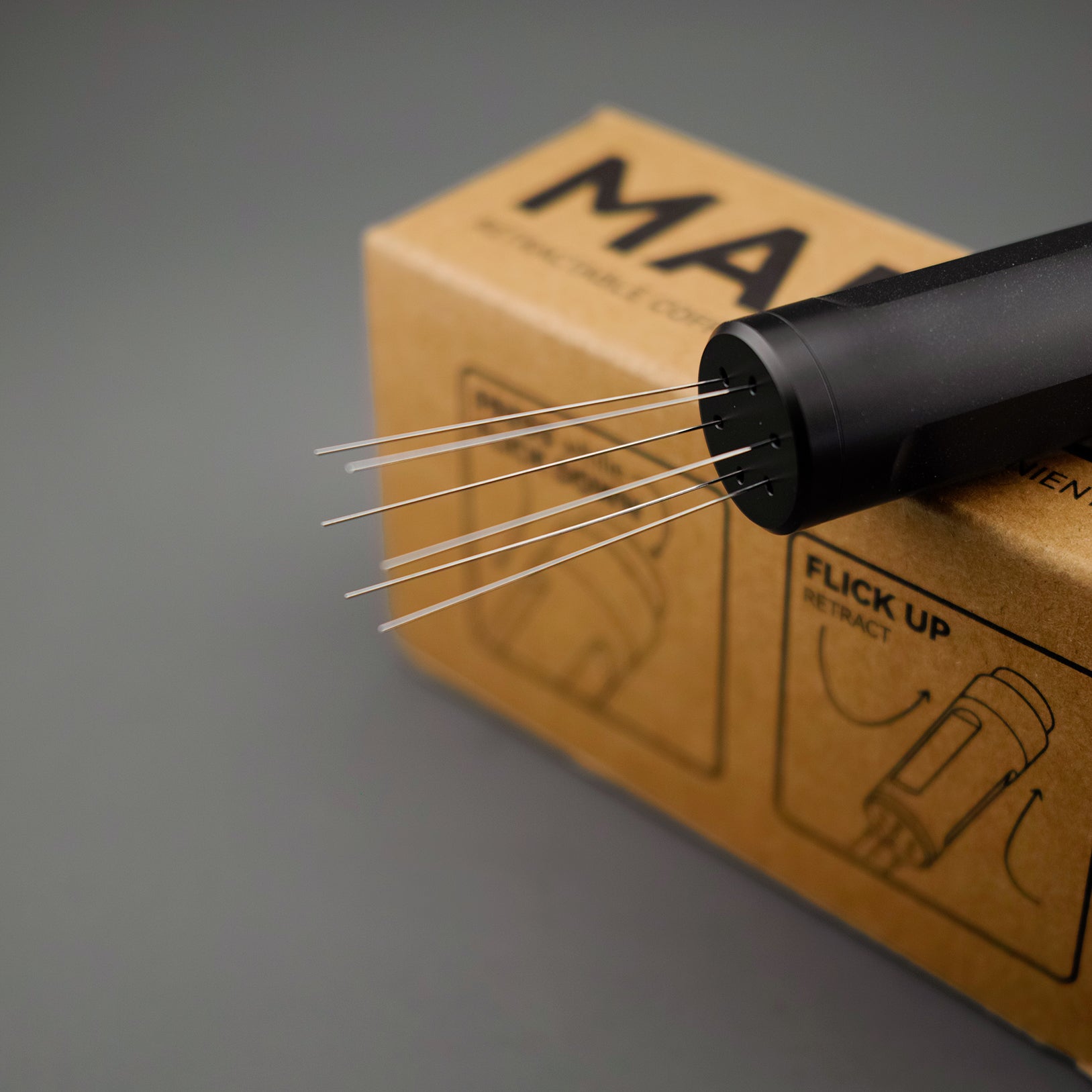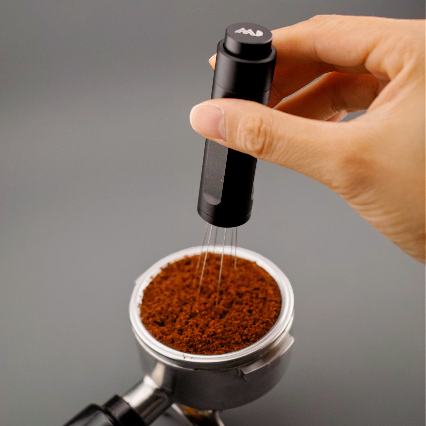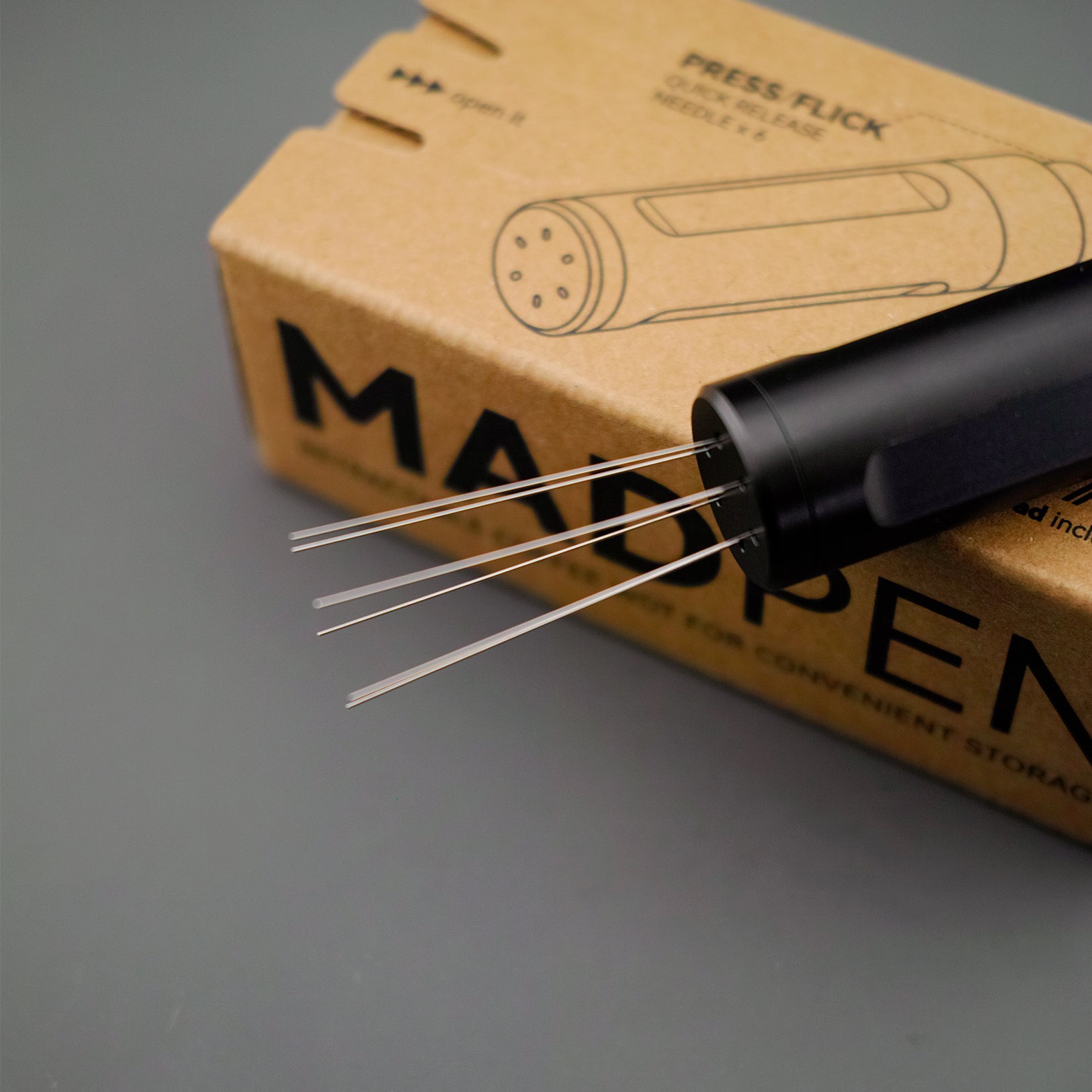 Equipped with six precision-engineered needles measuring 0.4mm in diameter, each featuring a flat head design for increasing safety and preventing scratches on basket, the Madpen ensures consistent and uniform distribution of espresso grounds every time. Say goodbye to uneven extractions and hello to perfection in every shot.