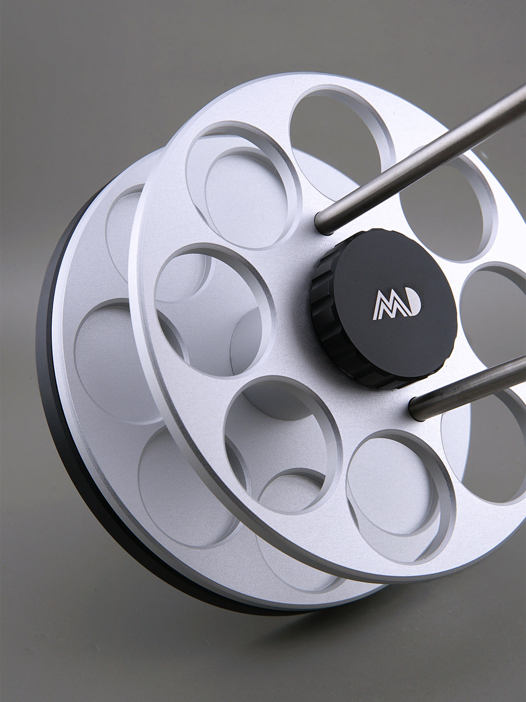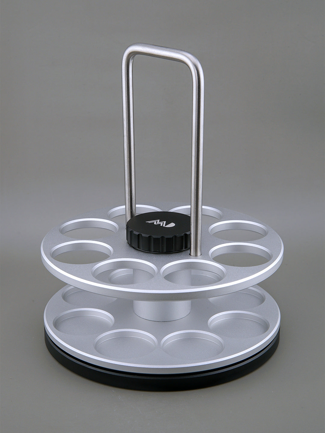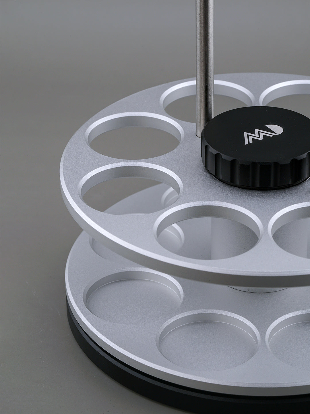 Crafted from CNC Aluminum Alloy with a stainless steel handle, this sleek and durable rack holds up to 8 MADTube Coffee Bean Storage Tubes. Equipped with dual bearings, it enables smooth, infinite rotation, making coffee bean retrieval effortless while offering a stress-relieving spinning action.