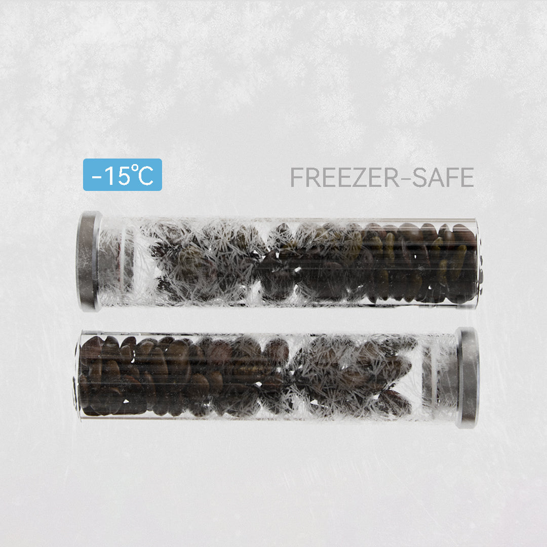 - Freezer-safe glass tubes with silicone-sealed, one-way valve lids for freshness and CO₂ release.