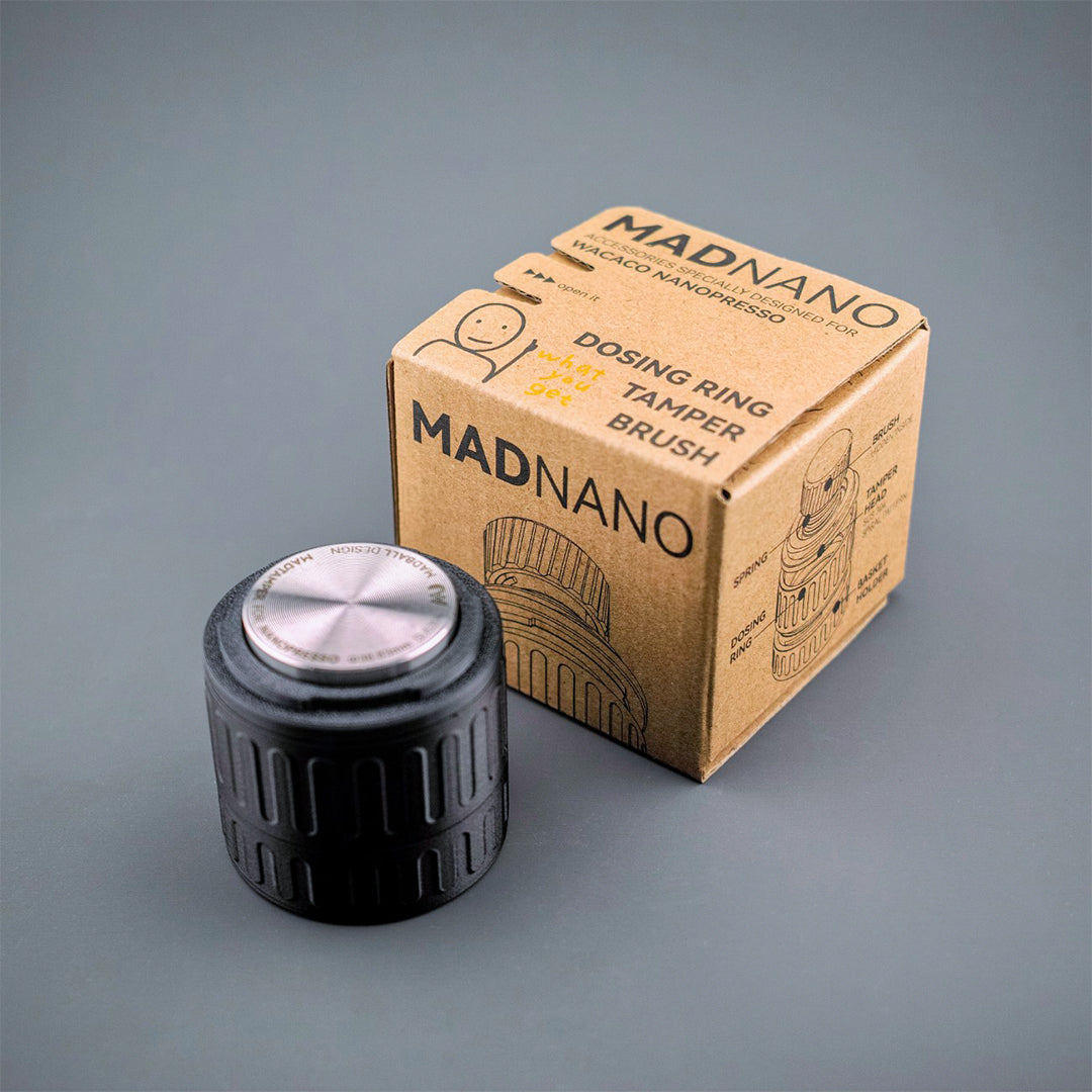 Introducing the "MADBALL Nanopresso Dosing Kit with funnel and tamper", a meticulously crafted accessory set tailored specifically for Wacaco Nanopresso users. This comprehensive kit redefines the espresso brewing process, ensuring unparalleled precision, consistency, and ease of use.