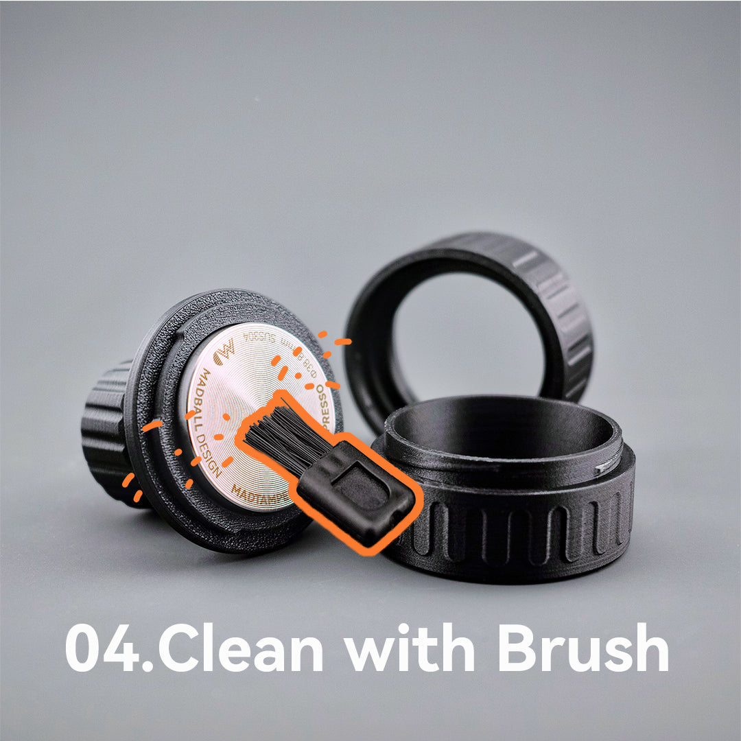 With the MADBALL Dosing Kit, gone are the days of messy coffee grounds spills. The included dosing ring and funnel facilitate a seamless transfer of coffee grounds into the basket, promising a mess-free experience with every use. Say goodbye to wasted grounds and hello to a cleaner, more efficient workflow.