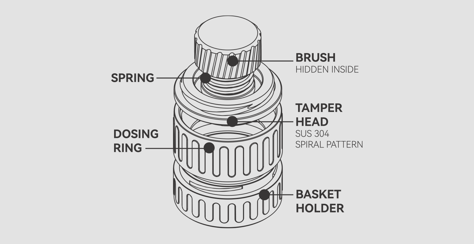The star of the show is the innovative auto-leveling tamper, designed to address common issues such as uneven puck distribution and channeling. Crafted with a base of robust 304 stainless steel, this tamper ensures that each puck is perfectly even and flat, optimizing the extraction process for a superior espresso flavor profile.