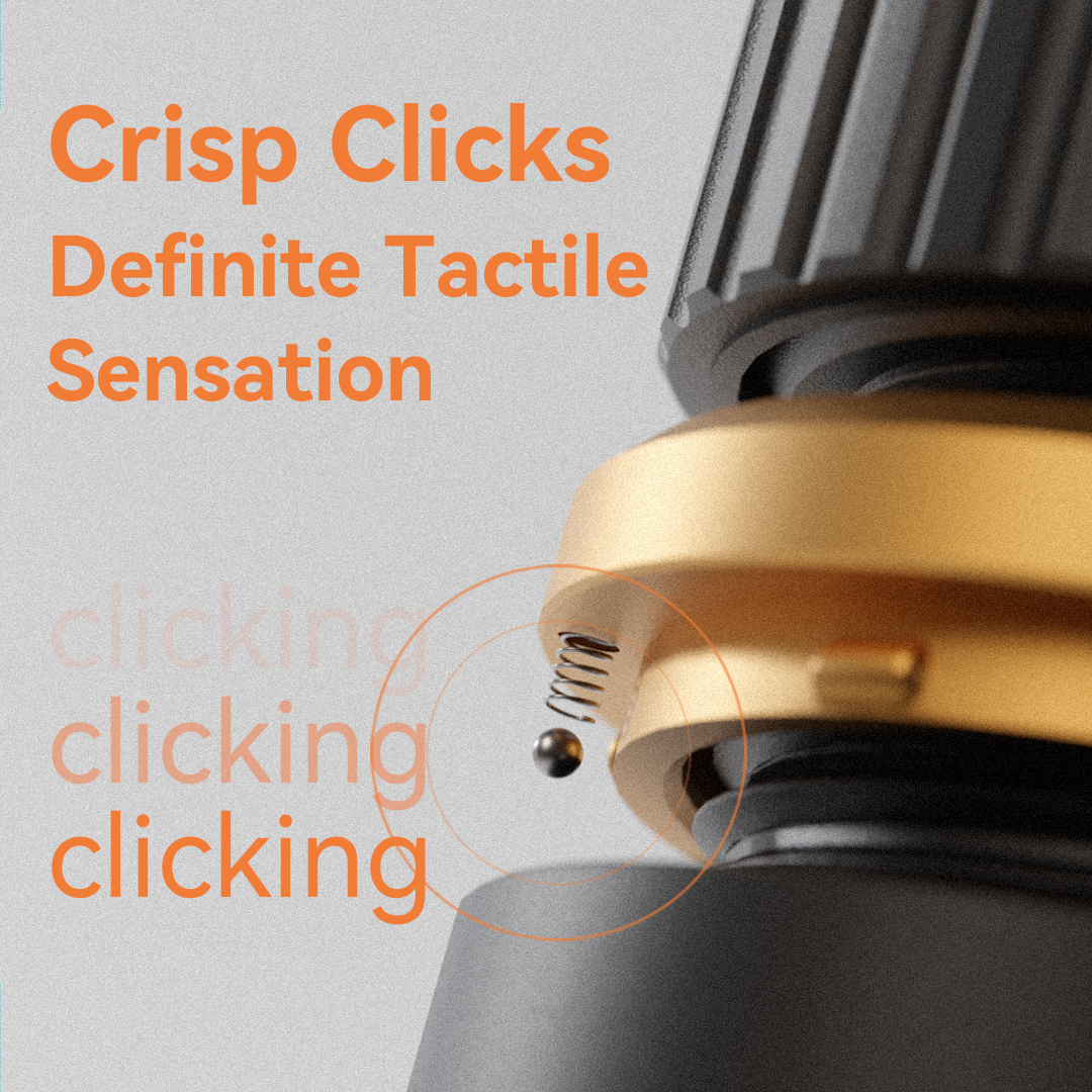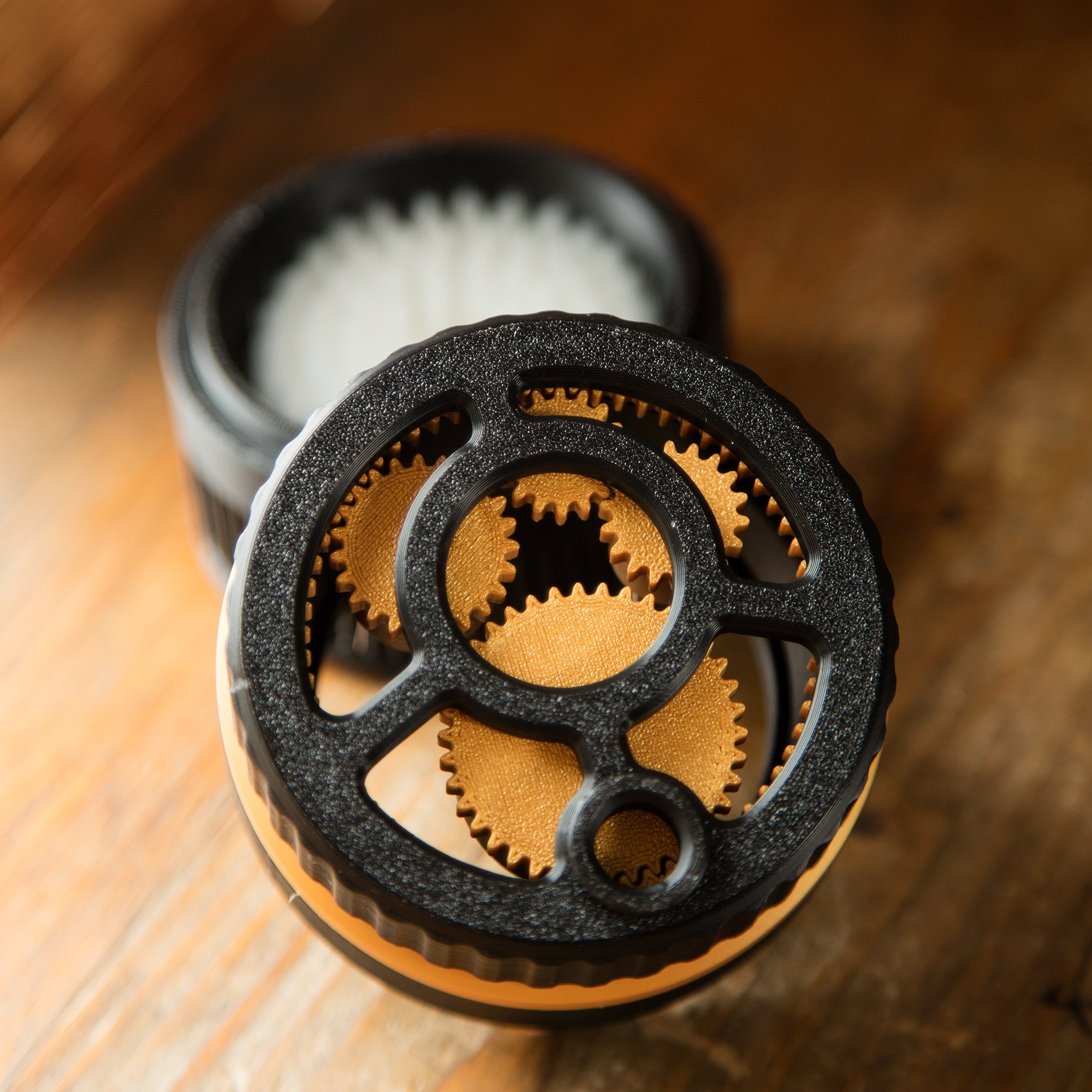 With a groundbreaking gear design, the MADBALL Dyna WDT Tool efficiently mixes, distributes, and fluffs the grounds in your portafilter in just four spins. Three distinct gears collaborate seamlessly for optimal performance. The big gear moves the pins back and forth across the basket, scrambling and mixing the grounds. The medium gear whirls around the entire basket, effortlessly slicing through any clumps in its path. The small gear pushes and pulls the grounds near the edge, ensuring complete basket coverage and impeccable distribution.