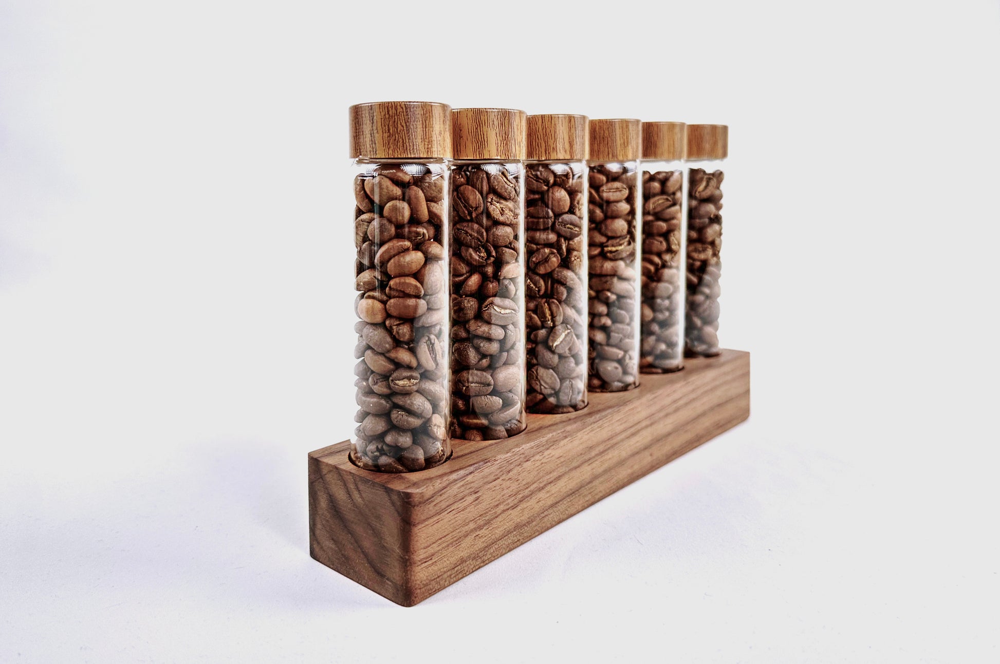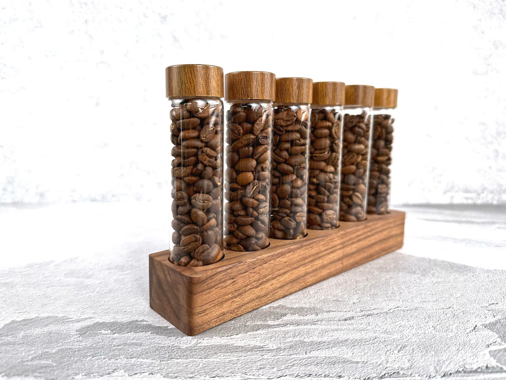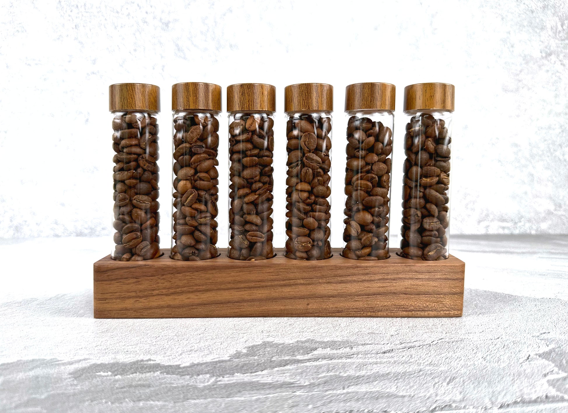 Single Dosing Coffee Beans Cellar with Walnut Wood Stand - 6 tubes