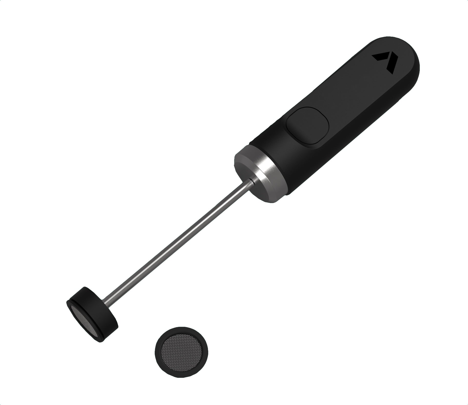 NanoFoamer V2 - The only AA battery-operated handheld milk foamer capable of making premium cafe-quality microfoam milk for latte art at home. Perfect foam for your cappuccino, cafe latte, or flat white, and includes a free Latte Art MasterClass with the purchase.