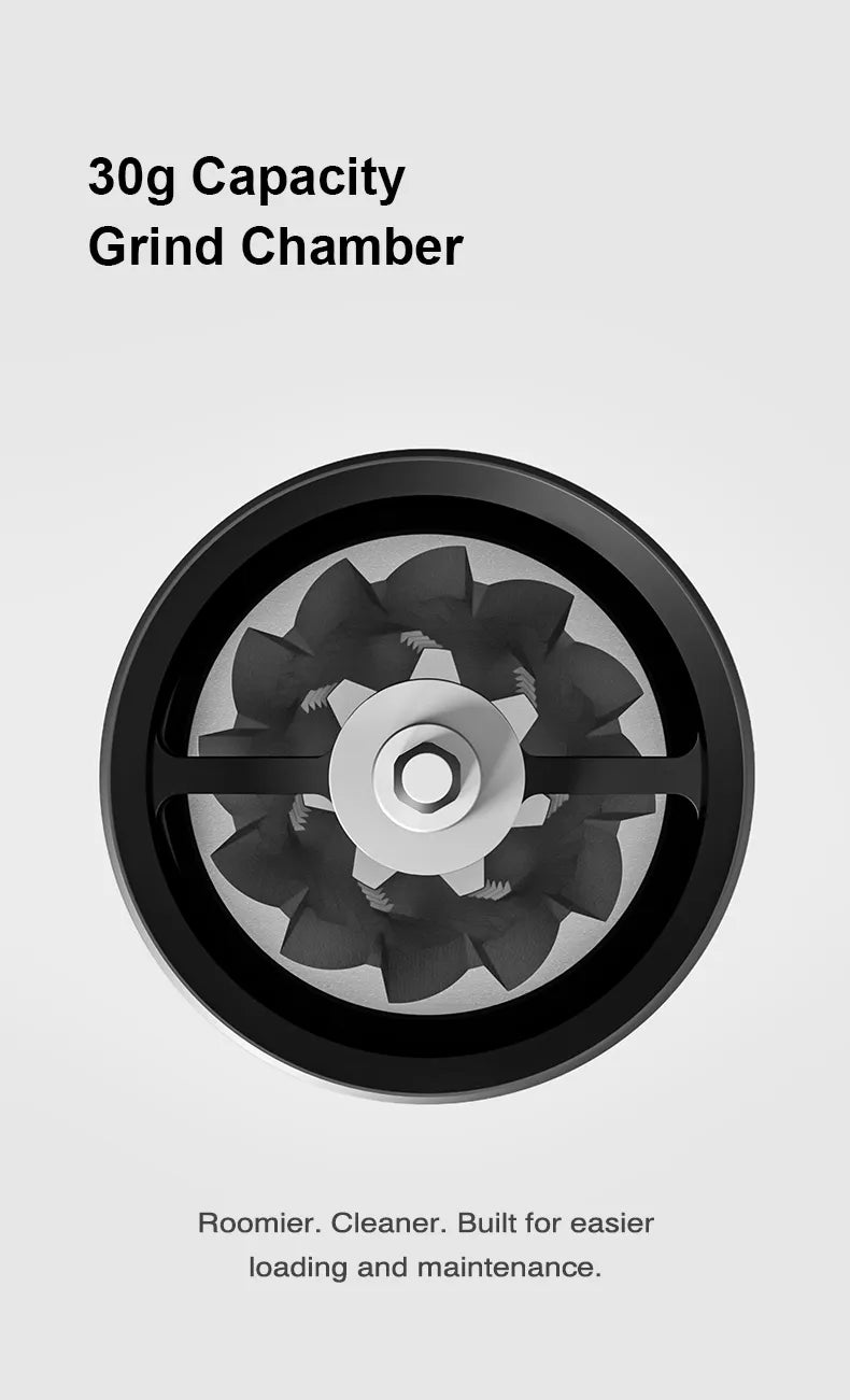 - Upgraded 42 mm S2C-042-III Burrs – Larger, sharper stainless steel burrs deliver faster grinding, improved consistency, and cleaner flavour extraction.