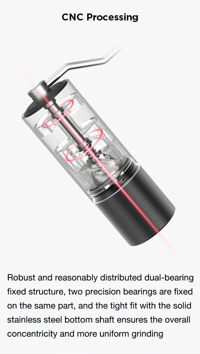 The biggest difference between C3 and C2 manual grinder is that C3 has been upgraded with new burr. The newly designed 38mm S2C 660 burr is applied to C3 manual grinder. Better grinding quality and more uniform particle consistency enable us to obtain better coffee flavor cleanliness, rich and balanced quality and strong body. If you are looking for a cost-effective and professional grinder, C3 will be your priority.