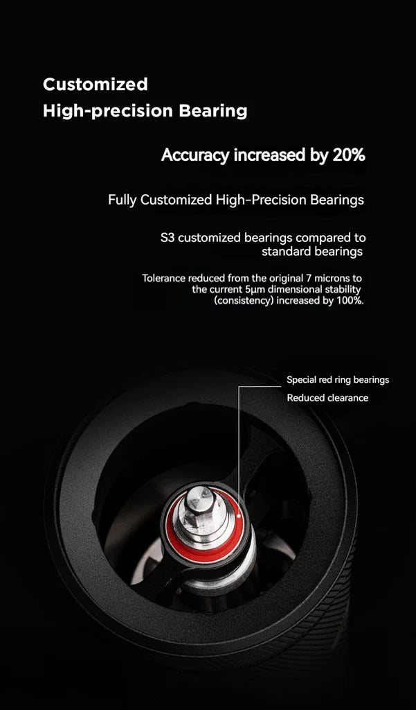 Micro-adjustments - With 15 clicks of mirco adjustments within the espresso range alone, and a total of 90 clicks of adjustments in its entire range. This makes the S3 the most accurate grinder in the entire Timemore range.