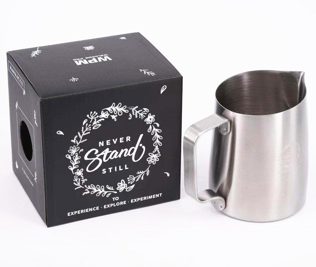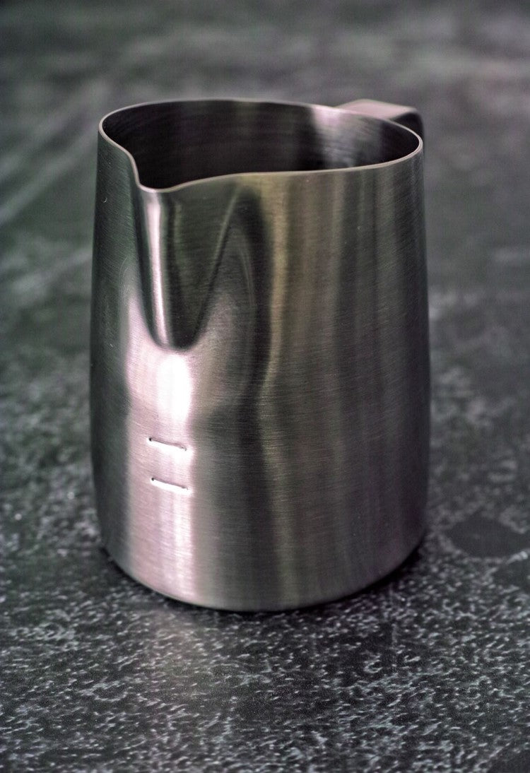 Manufactured by world-renowned WPM [Welhome Pro] and designed by world barista champion Ivy Lky this milk jug is finished in brushed stainless steel and has two impact lines and is suitable for producing enough milk for most specialty coffee drink. The super sharp spout provides the ultimate control for winning designs